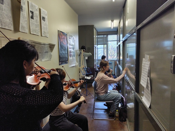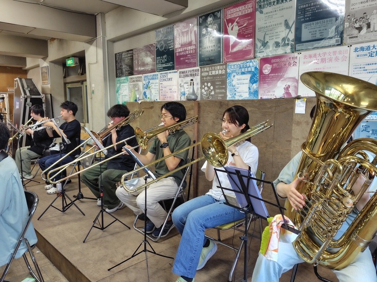 普段は北海道大学キャンパス内にあるサークル会館で、週2回の合奏練習のほか、パート練習などを行っています。