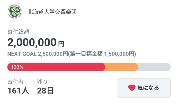 ここまで多くの方にご支援いただいたことに驚くとともに、北大オケが多くの方から関心を寄せていただいていることを感じています。