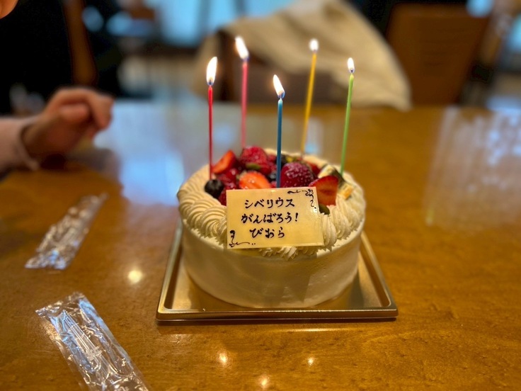 私たちのパートの行事として「ケーキ漬け」というものがあります。「景気付け」に引っ掛けてケーキなどを食べ放題する会なのですが、今年の5月のシベリウス演奏会で本番直前にホールケーキを食べた時の写真が下の写真です!みんなでホールケーキをそのまま食べるんですが、甘いもので緊張もほぐれ、本番前の最後の交流の場にもなっています。150回演奏会でもケーキ漬けする予定で、今からどんなケーキを食べるか楽しみにしています😋