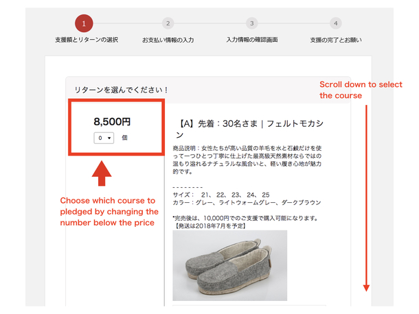 STEP 2: Choose how much to pledge/contribute for the project
