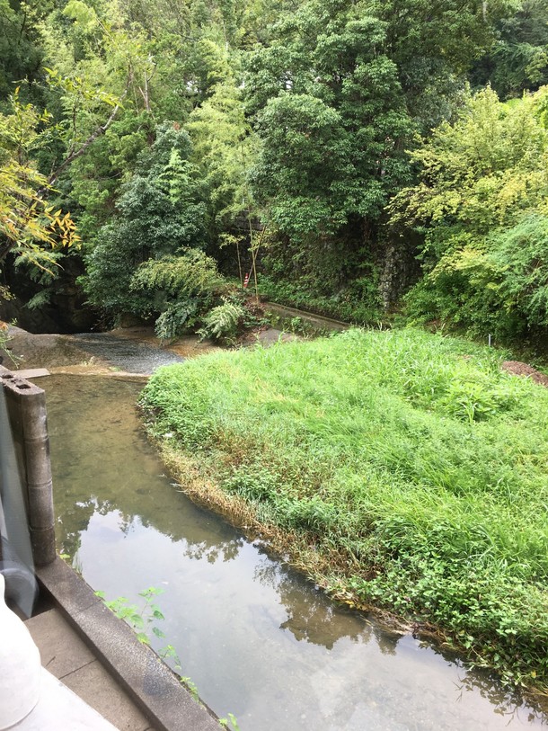 仮店舗「ひとしほ2nd」の店のテラスから見下ろせば山懐の疎水から清浄な風が吹き込んできます。