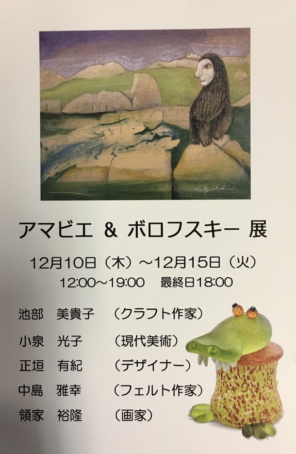 来月、12月10日から六日間、神戸は元町商店街の"KBギャラリー"に於いて「アマビエ&ボロフスキー展」を開催します。