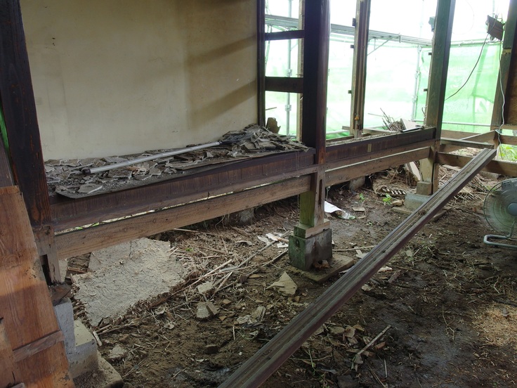 建物が傷むのには様々な要因がありますが、こうして床が取り払われて建物の骨組みが露わになることで、これまで建物掛かってきた力の流れをイメージしやすくなります。