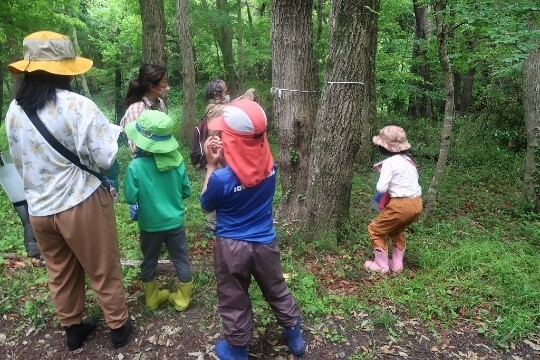 今年のナラ枯れ調査班は小学校の子どもを持つママさんメンバー5家族で活動しています。そのうち3家族では子供の共同自由研究に取り組んで、専門家の説明なども受けています。
