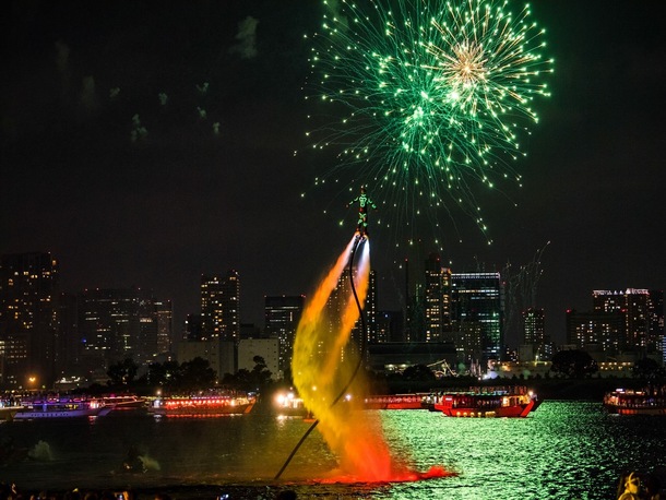 15年前、ハワイに在住していた時、マリンスポーツのショーマンになりたいと、そしてなろうと漠然と考えていた時から時代は進化し、ハイドロスポーツの出現や、夜の海面で行う為の防水LEDコスチュームなど、当時では考えられないテクノロジーの進化には驚くばかりですが、いまこの15年前の願望にチャレンジさせていただける環境は、情熱ある人たちの思いと、支えてくれる周りからのアドバイスや応援には、本当に感謝しております。