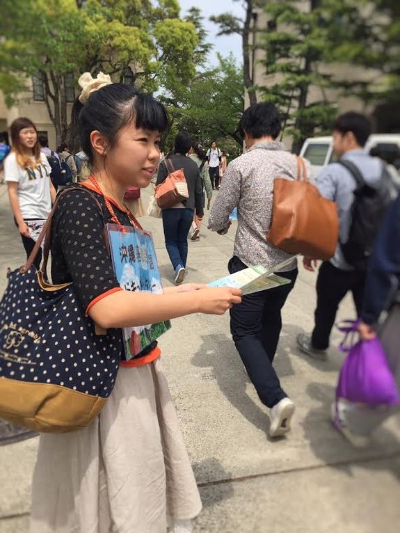 今日はお昼休みにチラシ配りをしました。