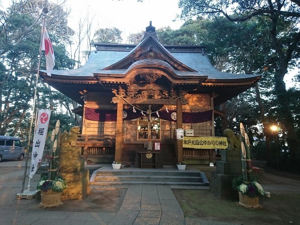 うちから徒歩2分、阿字ヶ浦の村社堀出神社です。