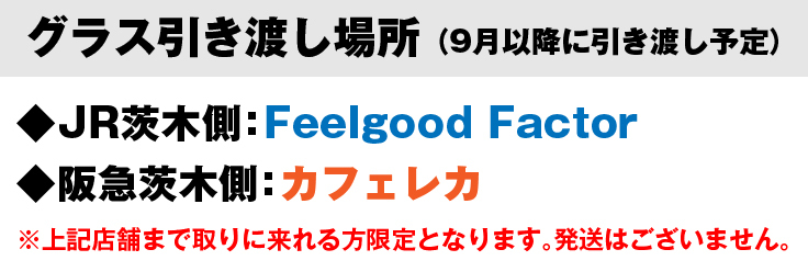 下記<グラス引き渡し店舗>にて引き渡し致します。