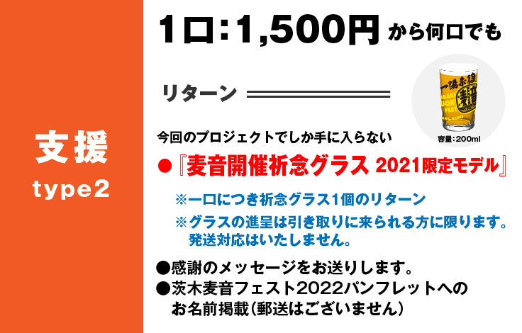 1,500円/一口¥1500から〜何口でも(一口につき祈念グラス1個のリターン)