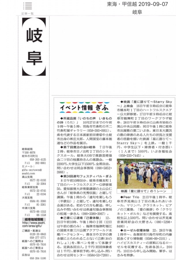 【お知らせ】映画上映会 朝日新聞~イベント情報ぎふ~掲載