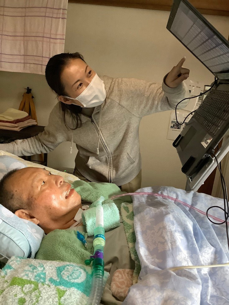 毎年100人以上の患者さんのサポートを行っています。体のどこかにほんの少しでも動く場所があれば、その機能を生かして機器を使うことができます。体が動かなくなったら視線を使って文字の入力を行うことができます。周りの人と会話をする、看護師さんを呼ぶ、コミュニティラジオに出演する、出版する、などこれまで病気のためにできなかったことができるようになり、社会生活の幅が広がります。意思を伝えること、コミュニケーションできることがこんなにも大切なことだったとは!
