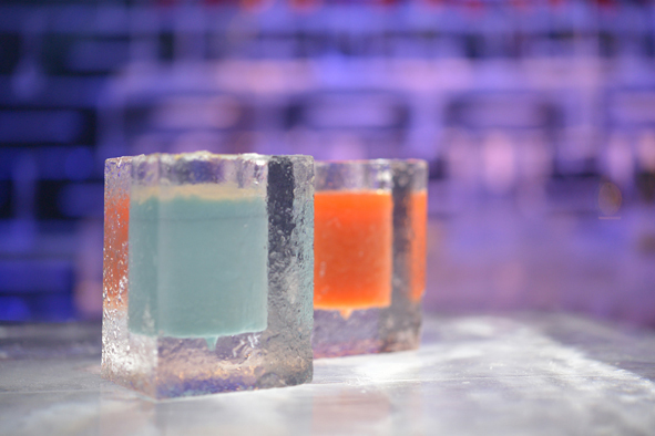建物内には用途に応じて使い分けていただける2つのスペースがあり、氷のグラスでカクテルをスタンディングで楽しめる「アイスバー」と、氷で仕切られている完全個室「アイスレストラン」では和食会席をご提供いたします。