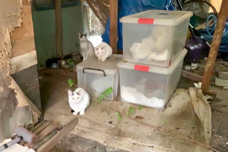 猫たちは不妊去勢手術がされておらず、状態の悪い子ばかり。成猫32匹に子猫30匹ほどがいました。初めて見た衝撃的な光景に言葉を失いました。