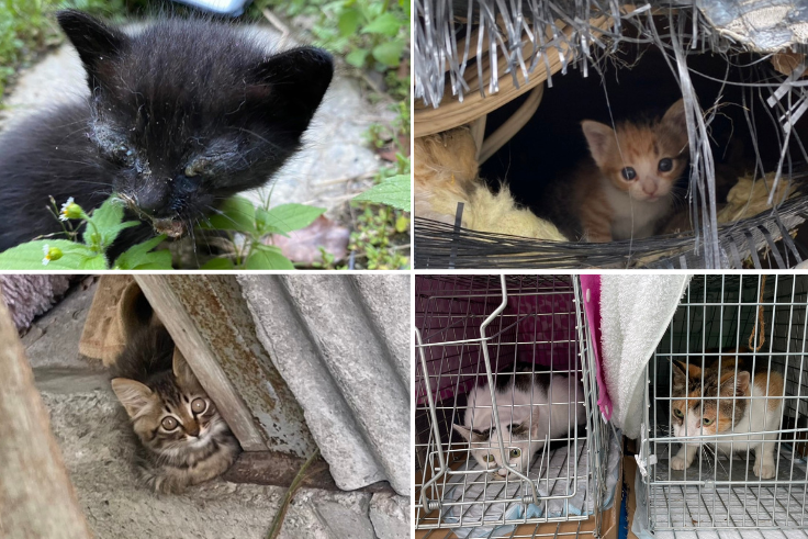 膿がたまり目を開けることができない子猫、目の状態が悪すぎる子は緊急手術となり、眼球摘出となった子もいました。状態の悪い子や子猫合計32匹を保健所とボランティアたちで協力して引き取ることになり、残りは地域猫として近所の餌やりさんや家主の方と協力して、お世話をしていただくことになりました。