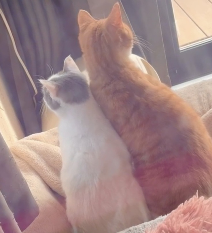 2匹はとても仲良くなりました。感染防止のため、他の子と一緒にできないため、理解ある里親さんを探していましたが、「長く飼えないけれど、ぜひ2匹でお迎えしたい」という方が現れました。