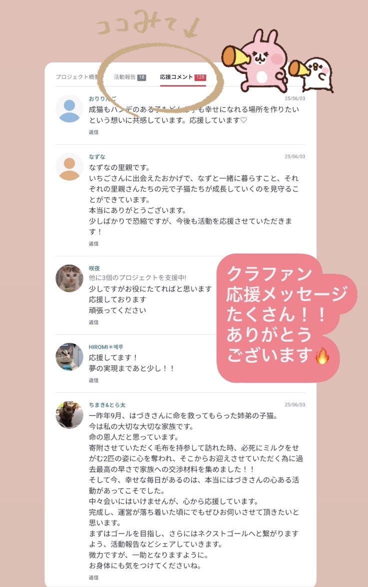 多くの応援メッセージが届いています!より一層頑張りたいと思えます!!