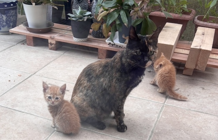 こちらは、5匹の子猫、母猫、そして母猫が昨年産んだ子が妊娠中。