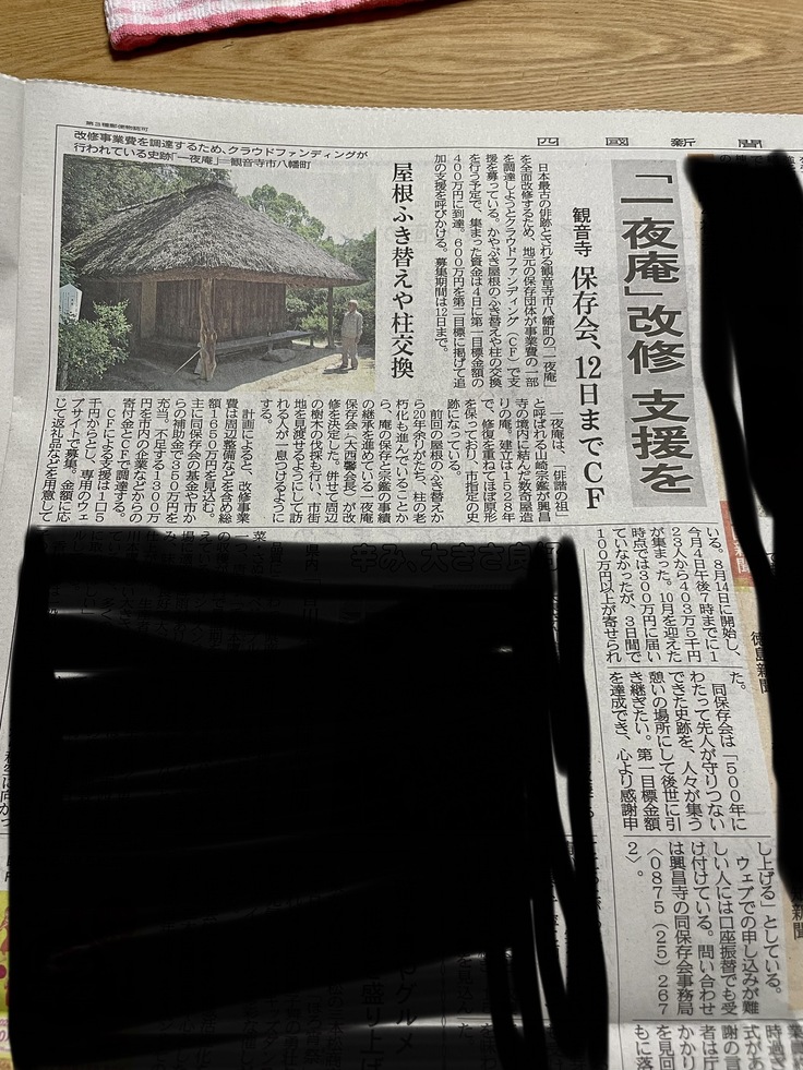 今朝、四国新聞さんにクラウドファンディングの記事を載せていただきました!