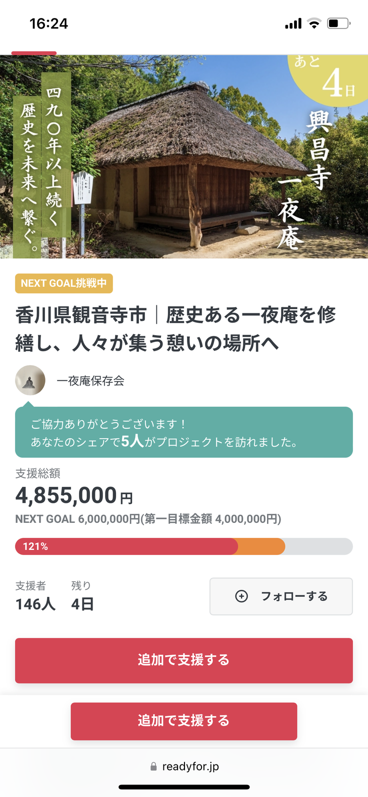 残り4日、身近な方に広めていただく形でも大変うれしいです。引き続きのご協力をどうぞよろしくお願いいたします。