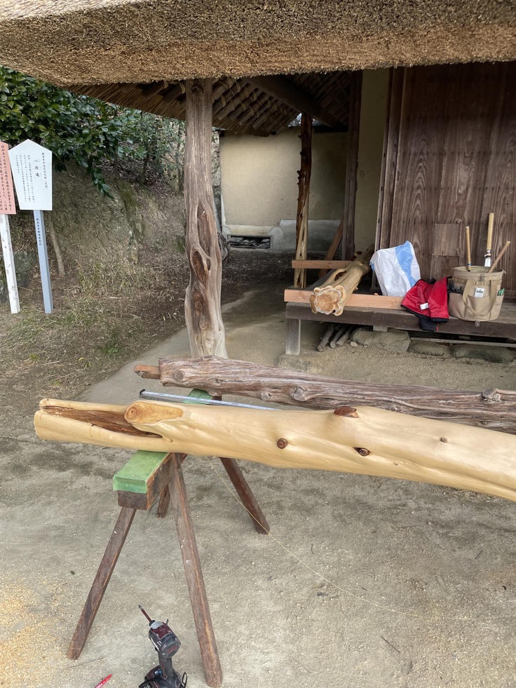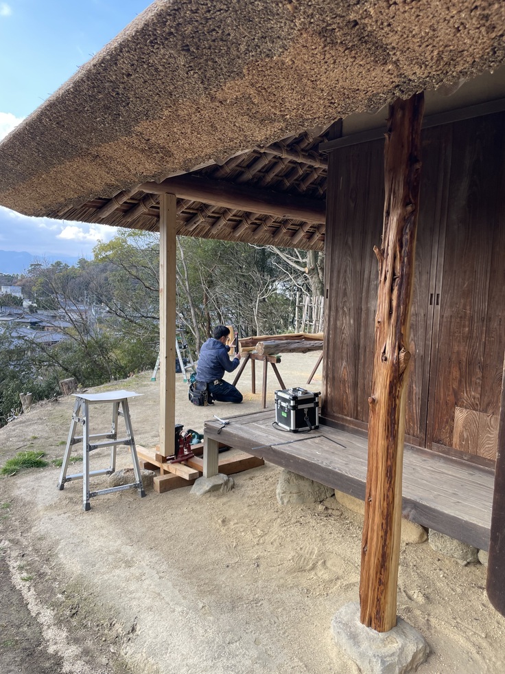 屋根の葺き替えが終わり、やっと最後の柱の入れ替えになりました。