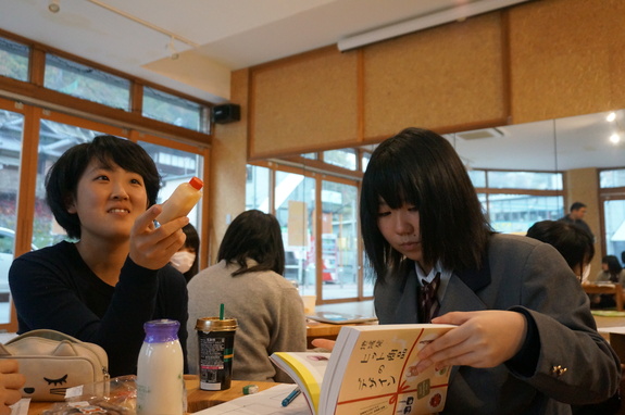 午前中、酒粕とミルクのストーリーをまとめ、発表を終えた高校生たち。