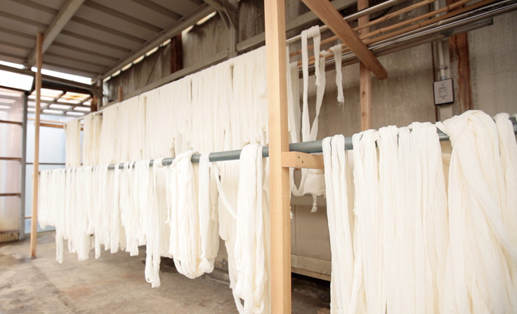 和紙は紙とはいえ水に強く、それを繊維にする過程で縒り(より)をかけたり天日干ししたりすることでより一層高い強度と耐久性をかなえています。