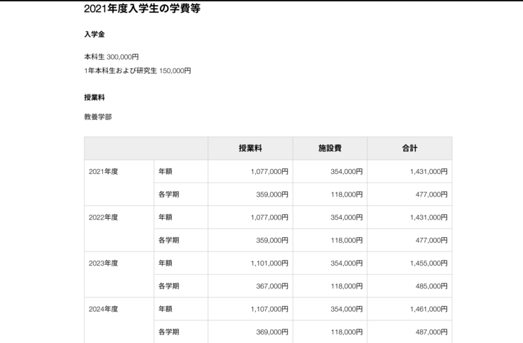 国際基督教大学(以下ICU)は、アメリカ的なリベラルアーツ、少人数教育を理念に掲げている事もあり、入学金、学費等全てを合計すると、四年間で最低でも600万円以上の金額が掛かります。