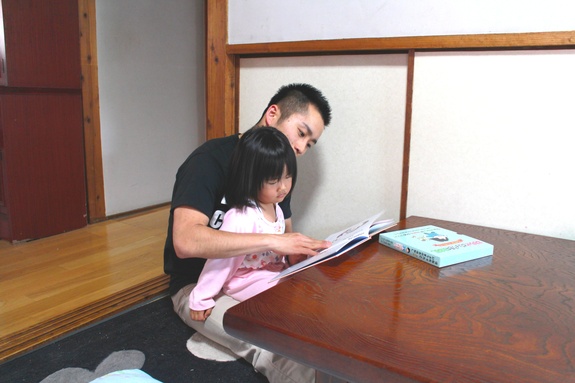 【絵本を読み聞かせる大村詠一専務理事】