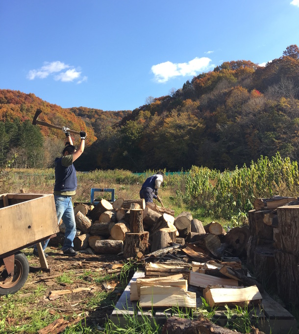 地元、角田米の農薬不使用のお米を使い、ナラや桜、白樺などの木で