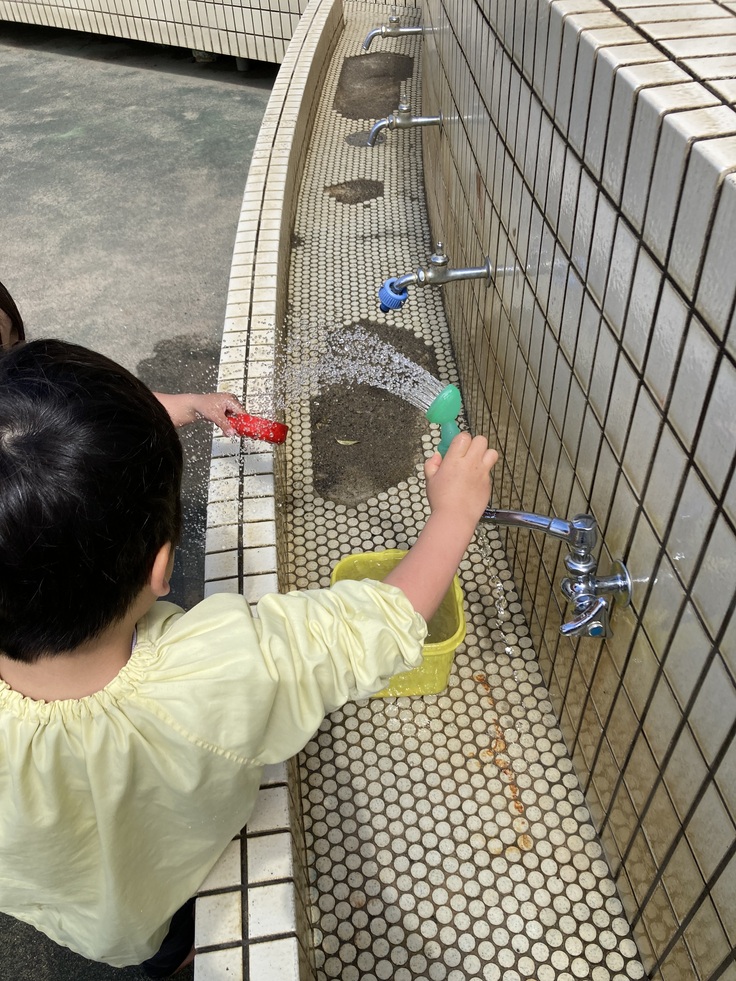 水道の水も大好き!水を飛ばしたり、水路を作ったりとどんどん遊びが広がっていきます。
