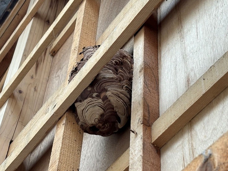 五十島ゲストハウスの工事が進んでいますが、今日は何とハチの巣を発見!