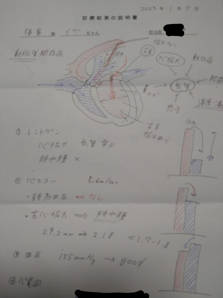 動脈管開存症で間違いなく、この病気は手術一択、との診断でした。