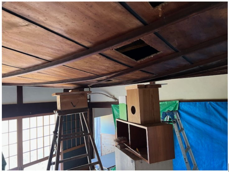 フリースクールを立ち上げるときに母屋の方をスタッフ・こどもたち・まちの人たちの手で整えてきたように、今回の「はなれ」も、できるところはこれまで同様、こどもたちや地域の方と一緒にできる限りDIYで整えていくつもりです。ただし、屋根だけはそうはいきません。専門家に見てもらったところ、老朽化が進み、天井ごと・屋根ごと落下する危険があるとのことで、プロにお願いする必要があると判断しました。