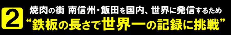 私たち飯田焼肉世界記録挑戦実行委員会は、長野県飯田市の市民有志団体「飯田焼肉倶楽部」が中心となり、飯田市の協賛を得て地元が誇る地域資源