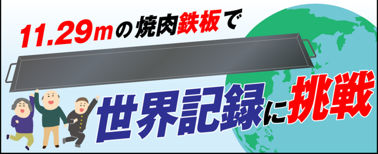 全長11.29mの焼肉用鉄板で、「鉄板の長さ」世界一の記録挑戦。