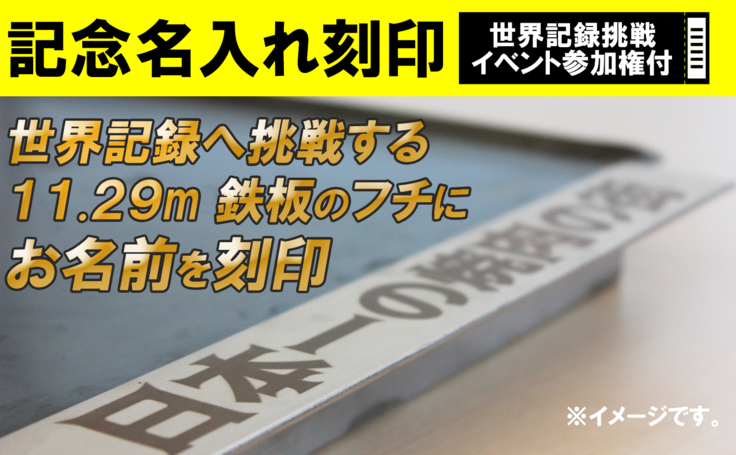 ご支援プラン毎の指定サイズで、世界記録に挑戦する11.29mの焼肉用鉄板のフチに刻印します!