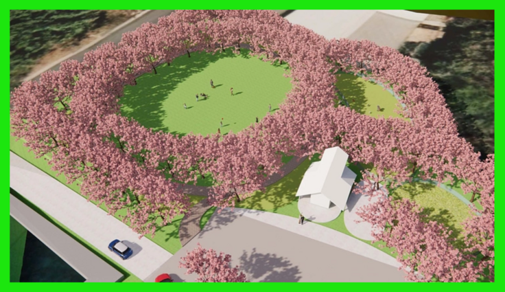 桜広場の建設予定地と完成予想図は下記の様相となっております。動画では3D映像を使って桜広場の建設予定地の周辺の様子も映しております。