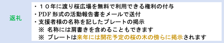 ●10年に渡り桜広場を無料で利用できる権利の付与