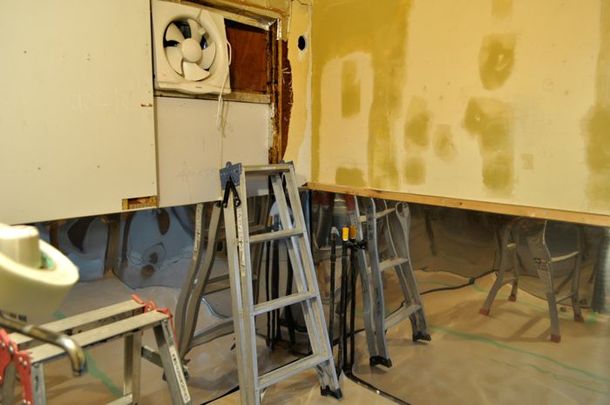 壁のクロスはすべて取り替え、下半分はステンレス張り、天井も直します。