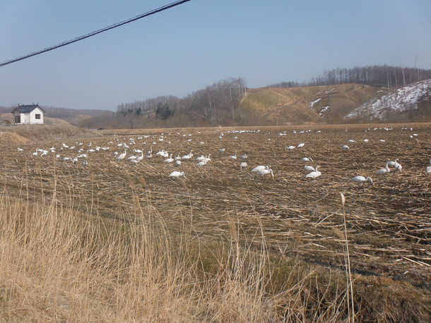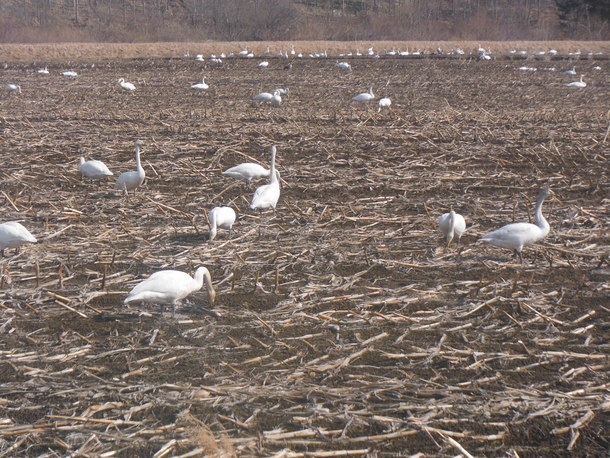 北の方へ帰っていくハクチョウたちです。