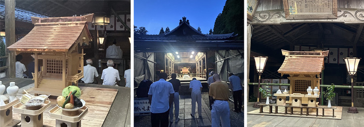 同日19時より、「仮遷座祭」を斎行、御祭神御神体を、本殿より拝殿に据えた仮殿へ、粛々と仮遷座いたしました。