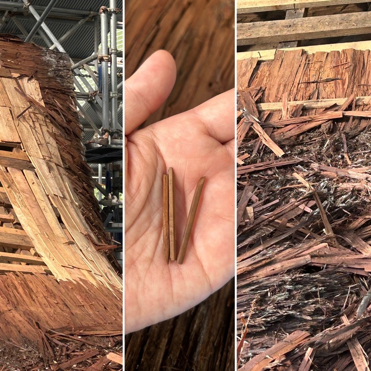 職人さんにより、屋根の下地、垂木や野地板、桟木、檜皮などが、丁寧に取り解かれました。