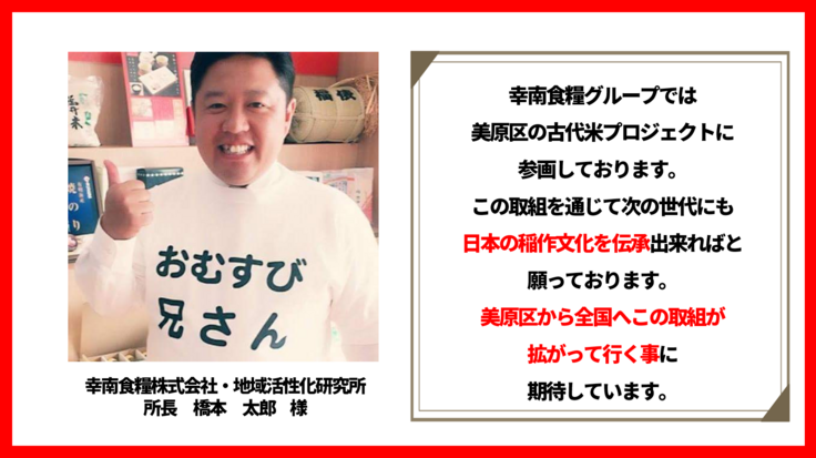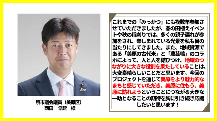 大阪府堺市美原区の地域資源である美原の古代米&農芸鴨を活用して、
