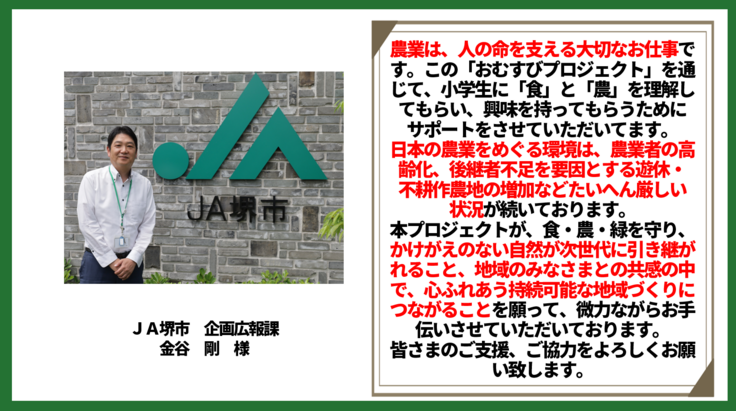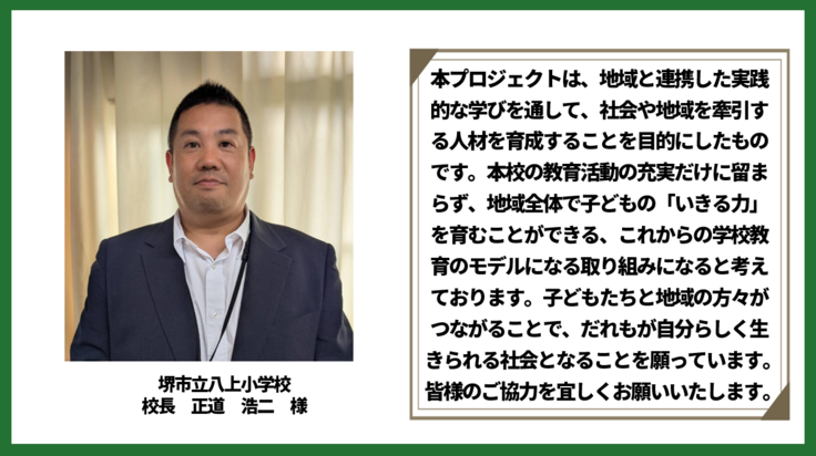 ※クラウドファンディングページ内に使用されている名称・ロゴマーク・写真・素材等は関係者(株式会社山徳・JA共済・株式会社オム印刷・大阪府立農芸高等学校・美原区役所・堺市立八上小学校・応援メッセージ記載者等)・保護者から許諾を得て掲載しております。