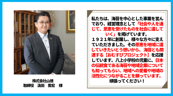 ✅地元企業「山徳」さんと連携して、おむすびに必要不可欠な海苔ができるまでを見学❗️