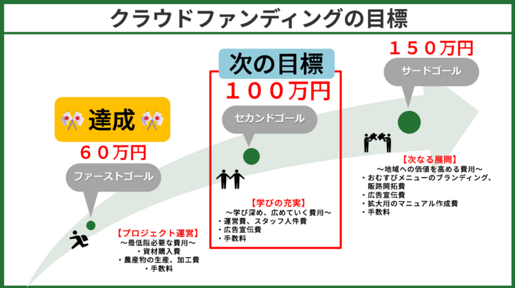 ※仮にネクストゴールの金額を達成できなかった場合も、自己資金を元に実施いたします。