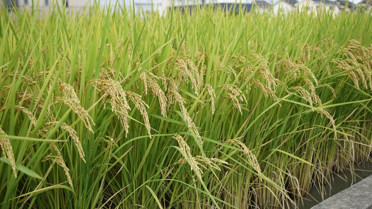 6月に植えた苗がこうして黄金色に実り、収穫を迎える日。