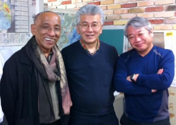 (写真は左から森本さん、私、そして東日本大震災支援で私と共にJANICで活動した竹内俊之君です)
