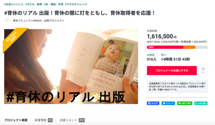 35日間にわたって挑戦してきました、クラウドファンディング「#育休のリアル出版!育休の闇に灯をともし、育休取得者を応援!」プロジェクトも、あと13時間を残すのみとなりました。