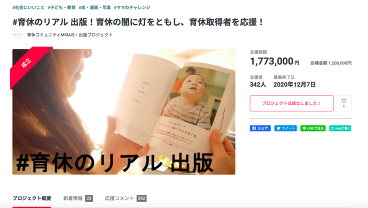 <応援>「育休のリアル」(本)出版 純粋応援コース